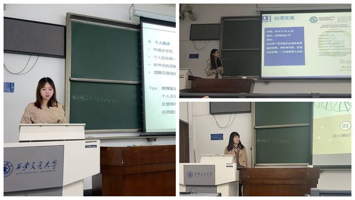 在出国交流与深造方面,本科期间赴台湾交流的马梦同学为大家详细介绍了交流的基本流程与情况,并结合自身经验对出国留学申请给出了建议,分享了申请时准备的各项资料。曾赴韩国交流学习的李琳同学分享了自己的交流经历,并介绍了出国申请需要做的一系列准备,强调了合理规划时间的重要性,以及要做好实习经历的储备。曾赴美国交流的经历陆雨婷同学详细介绍了参加浙大模拟市长比赛与夏令营的经历,并分享了自己在出国与保研之间的进行选择的心路历程。